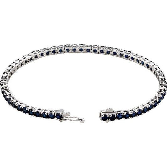14K White Lab-Grown Blue Sapphire Line 7.25" Bracelet