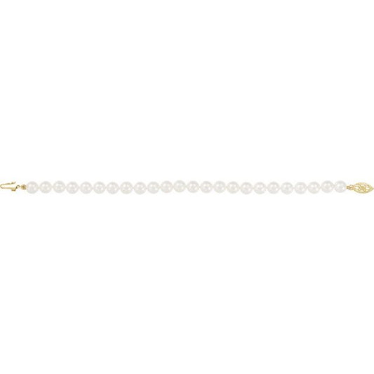 14K Yellow 6-6.5 mm Akoya Cultured Pearl 7" Bracelet