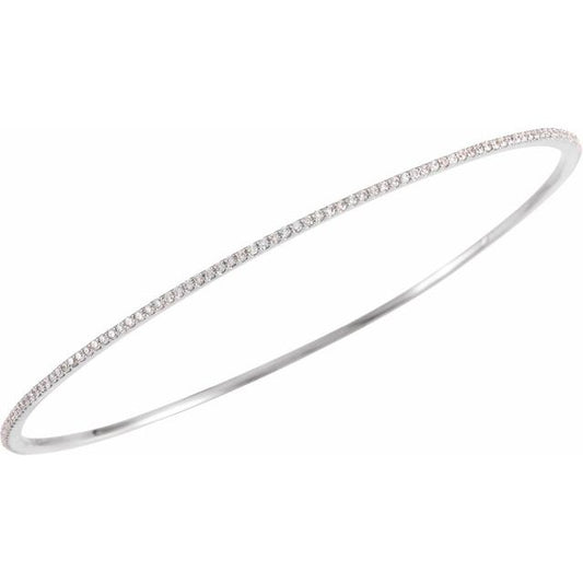 14K White 1 CTW Natural Diamond Stackable Bangle 8" Bracelet