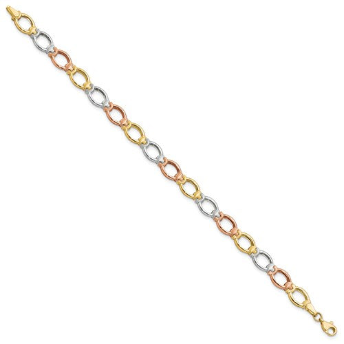14K Tri-color Polished and Satin Link Bracelet